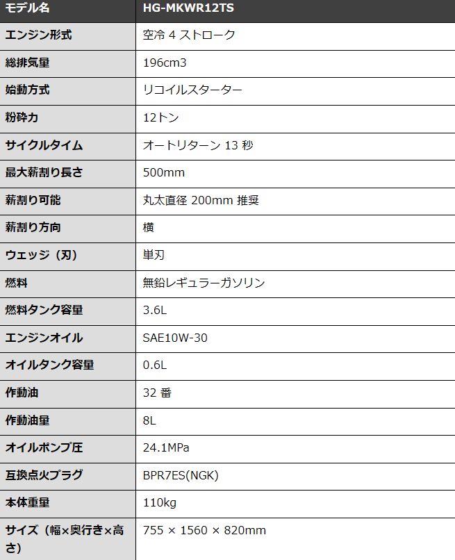 ハイガー エンジン式薪割機
