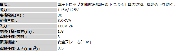 ◎入力電圧(AC100V)を15%または25%アップします。電圧ドロップを解消して電動工具の能力を100%発揮する。